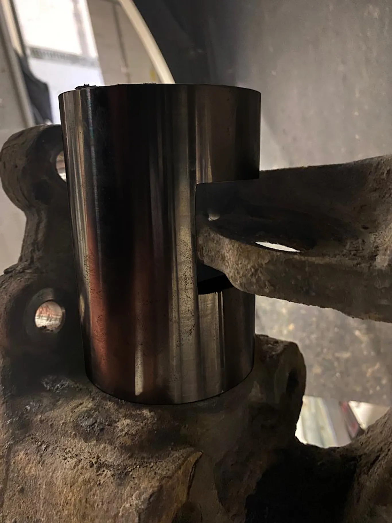 Irrotus holkki, jossa on aukko iskunvaimentimen kiinnikkeelle olkatapin päällä. Putken koloa tarvitaan, jotta olkatappiin pääsee käsiksi puristettaessa sitä ulos. Muutaman vuoden ajon jälkeen tämäntyyppinen olkatappi juuttuu kiinni, ja sitä on painettava ulos erittäin voimakkaasti. Puristusputki on suunniteltu jopa 70 T puristamiseen.