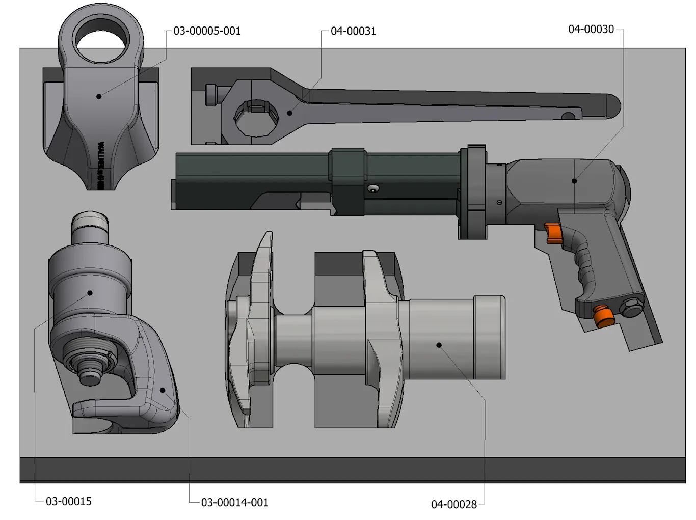 Solumuoviin sopivat työkalut, 03-00005-001, 04-00031, 04-00030, 03-0015, 03-00014-001, ja 04-00028 Solumuovit sopivat työkaluvaunuihin 04-00022 ja 04-00022-300